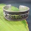 El diseño elevado es Om Mani Padme Hung. (Salve a la joya del Loto) Esta es la oración de compasión que se escucha en todas las comunidades tibetanas. Incluye diseño de dragón tallado en el interior. Haga clic a continuación para ver el dragón en la pulsera.
