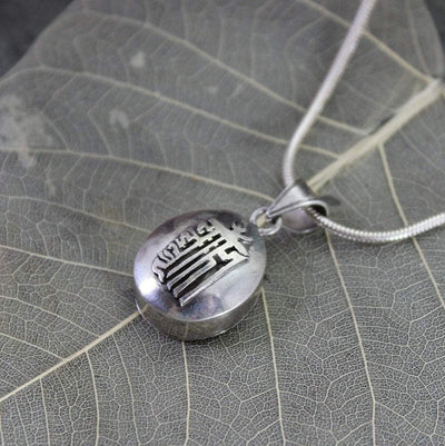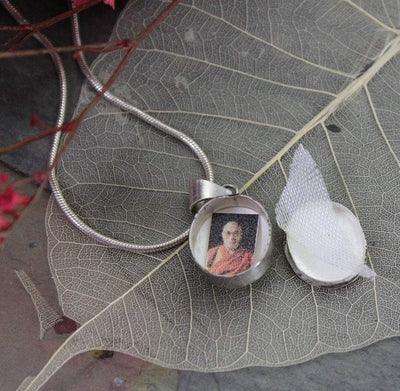 Un hermoso y pequeño kalachakra gau. En el interior hay una imagen de HH y un pequeño fragmento de un pañuelo de oración. Plata esterlina
