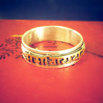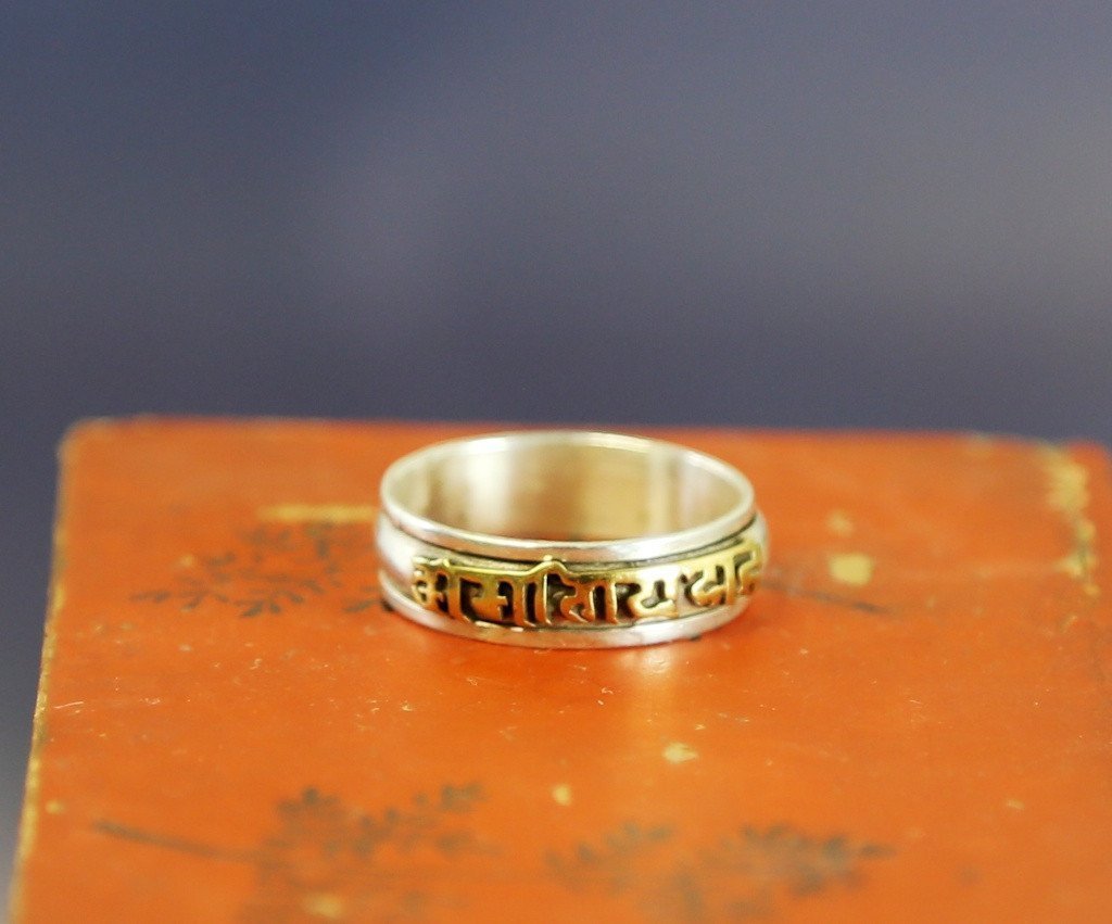 Banda de plata de ley con mantra de compasión de latón giratorio. Por favor elige el tamaño del anillo. Cantidades limitadas.
