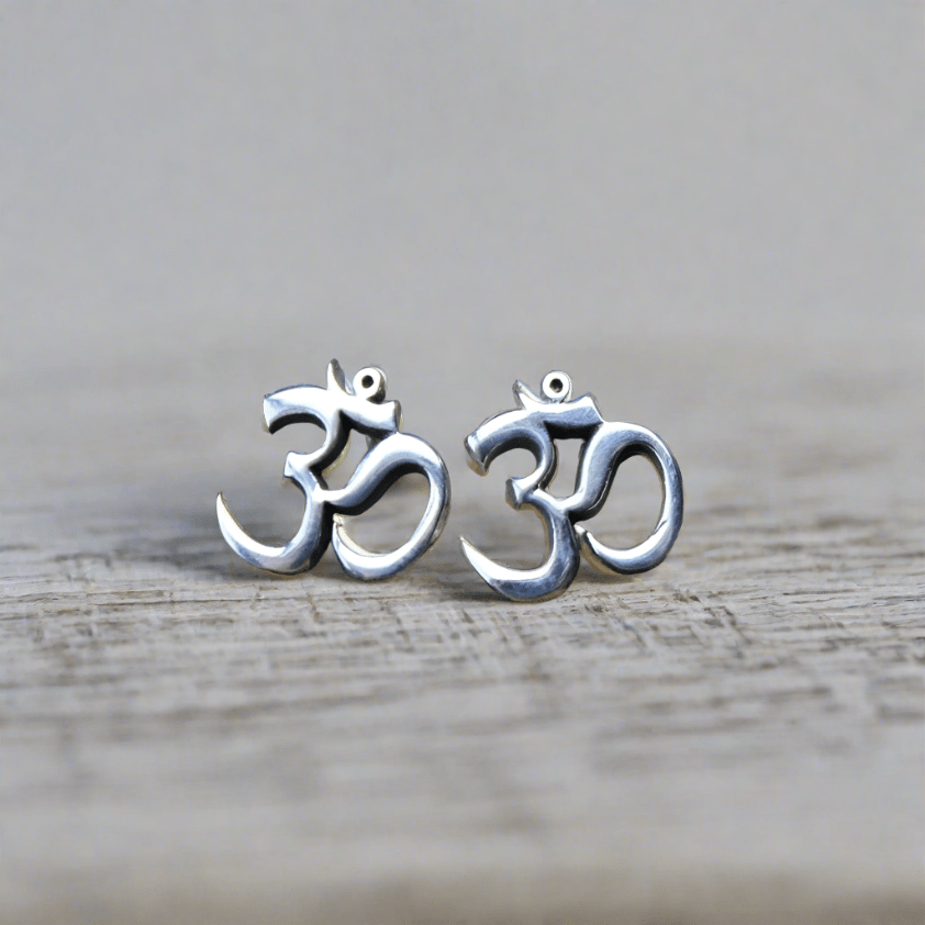 Estos aretes pequeños y sencillos son perfectos para el uso diario. Om en poste de plata de ley 0.925. Hecho a mano en Nepal.