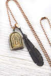 El collar mide aproximadamente 24 pulgadas de diámetro. La pluma mide aproximadamente 3 pulgadas de largo y 0,5 pulgadas de ancho. El amuleto tailandés mide aproximadamente 1,25 pulgadas.