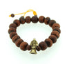 Una hermosa pulsera tradicional mala hecha con semillas de bodhi y un dije de campana tibetana de peltre.