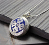 Un colgante tibetano realmente único. Lapislázuli engastado en plata sobre un colgante plateado. Hecho a mano en Nepal.