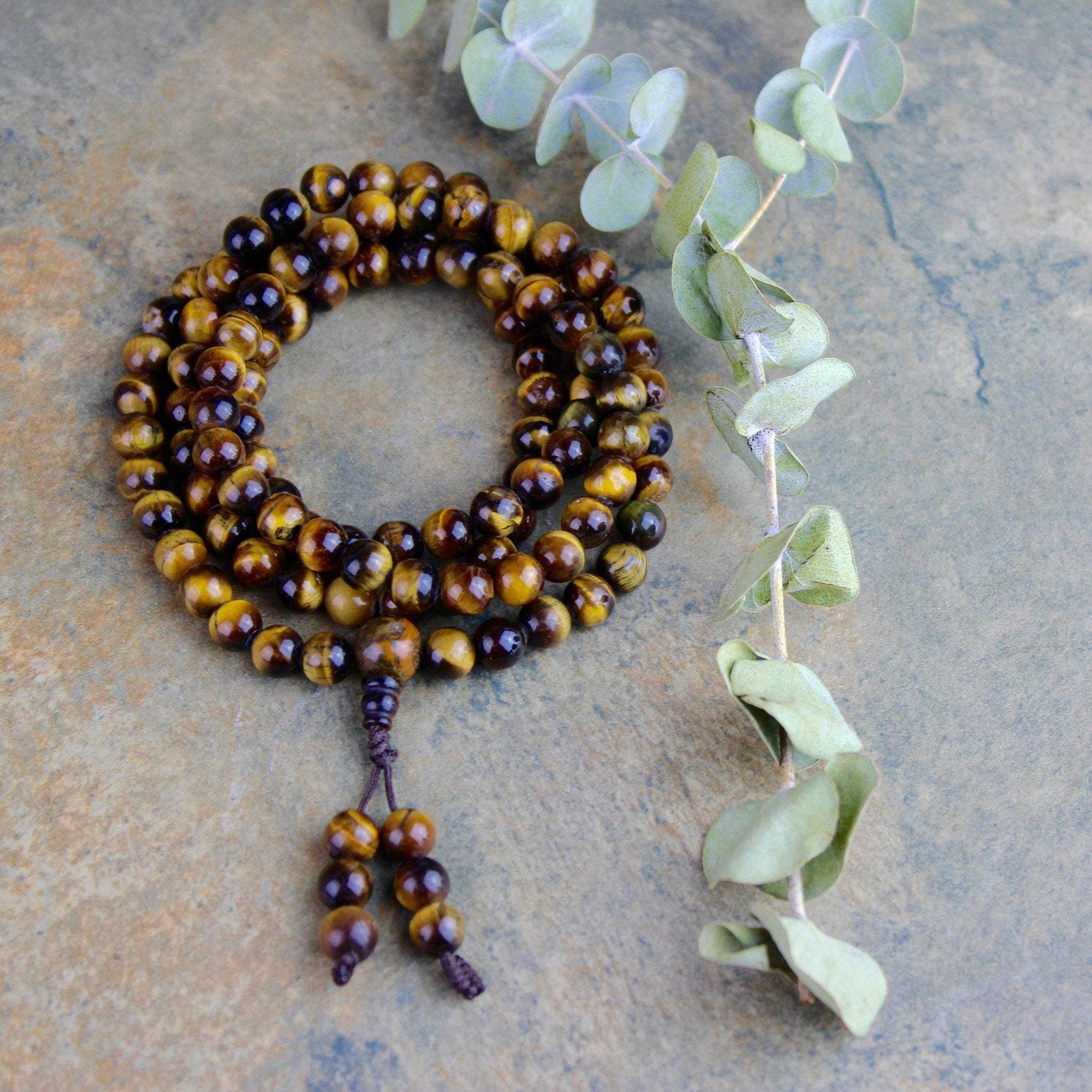 Una nueva mala Tiger Eye de Nepal. Hecho a mano por nuestros maestros fabricantes de malas, esta mala es similar a la que usa el Dalai Lama.