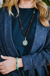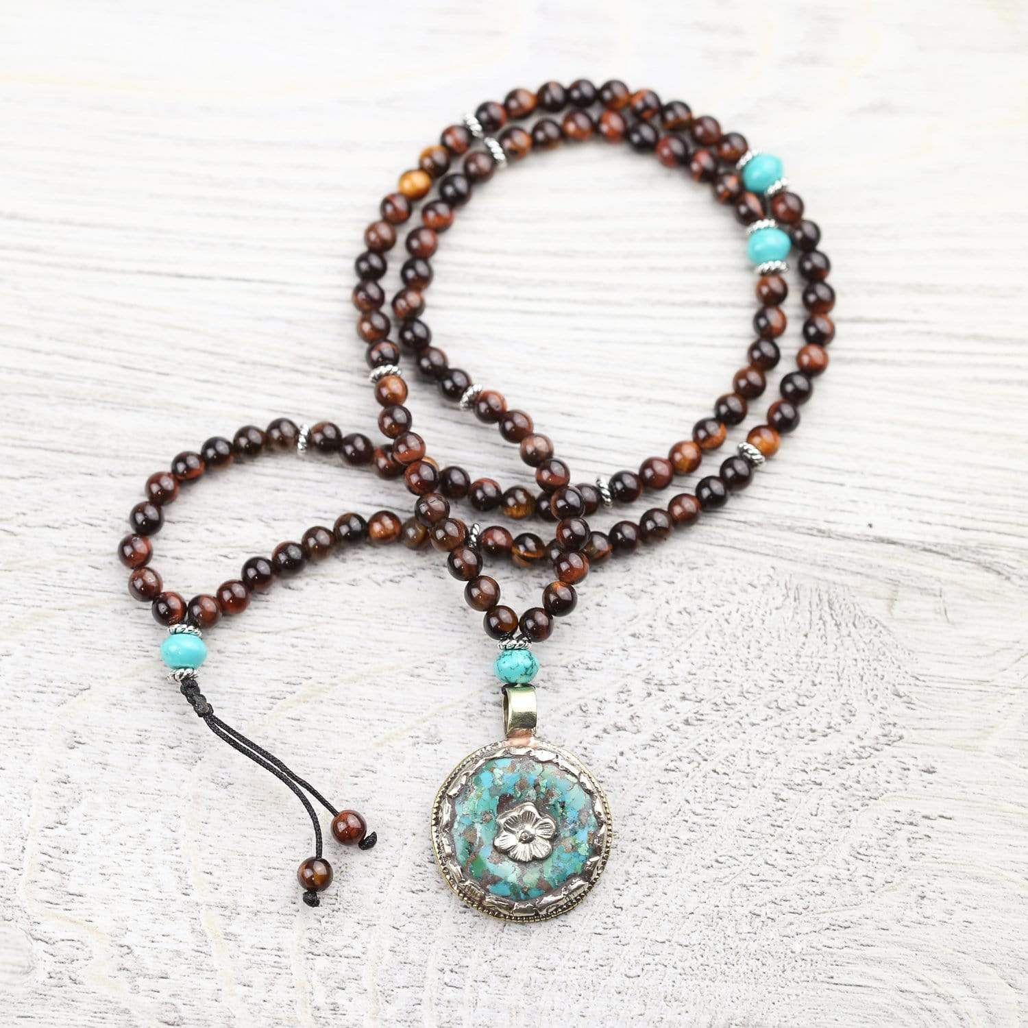 Mala mide aproximadamente 27 pulgadas de diámetro. Las cuentas miden 8-9 mm. El colgante mide aproximadamente 1,75 pulgadas desde la parte superior del fardo y mide aproximadamente 1,25 pulgadas de ancho.