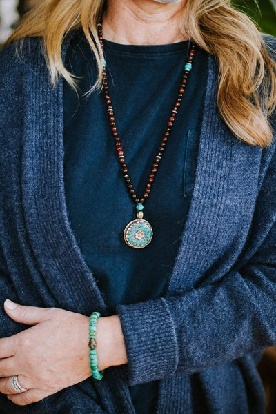 La turquesa es uno de los amuletos de protección más antiguos, protege a quien lo lleva de la energía negativa y puede traer buena suerte. Es una piedra muy personal y significativa para quien la usa, y puede adoptar las características de su propietario.