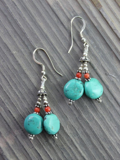 Hecho a mano en Katmandú Nepal con plata de primera ley y piedras de turquesa. Sólo tenemos 3 pares de estos increíbles aretes.