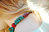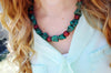 Hecho a mano en Katmandú, Nepal. Collar de cuentas de hueso de búfalo de agua teñido de turquesa y rojo. 18 pulgadas alrededor.