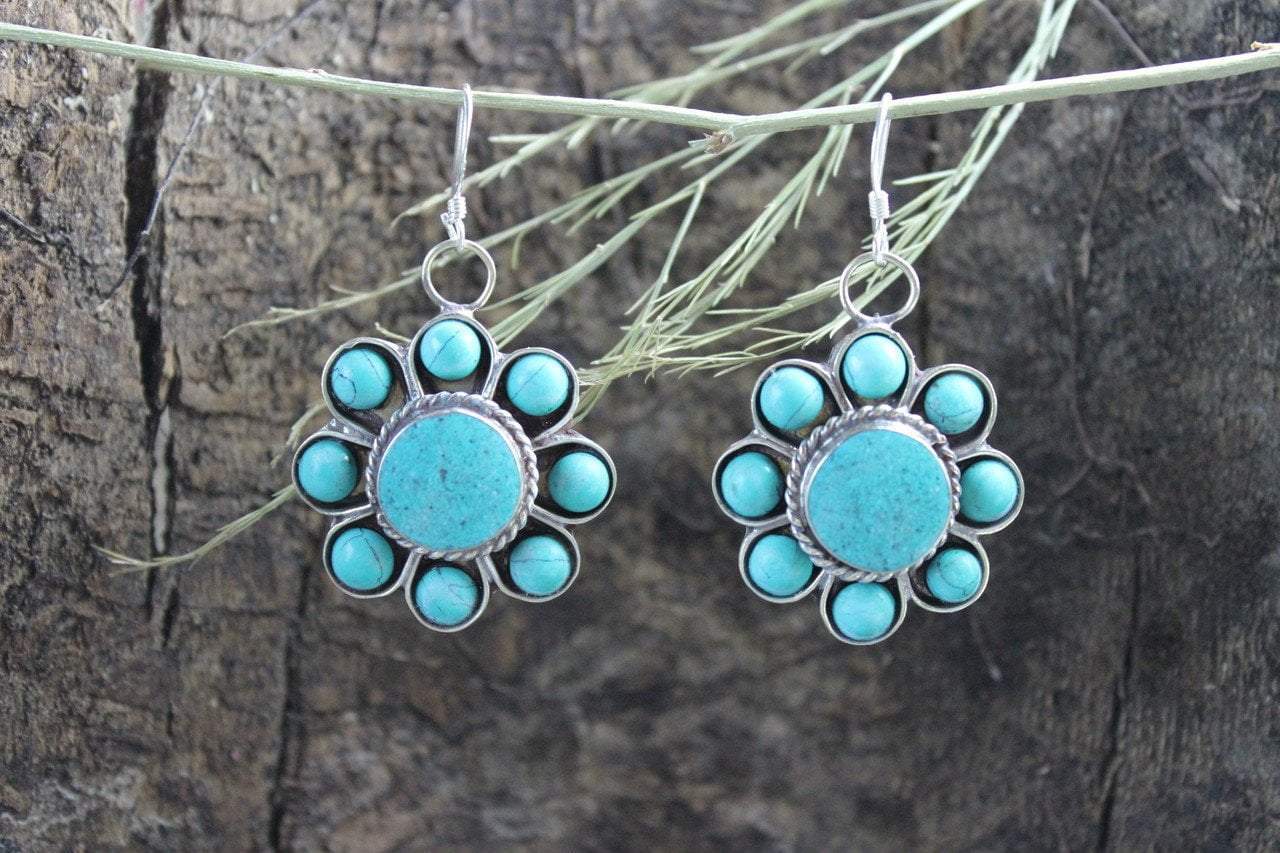 ¡Agrega un toque de color a tu guardarropa con estos aretes de metal blanco con resina turquesa y cuentas!