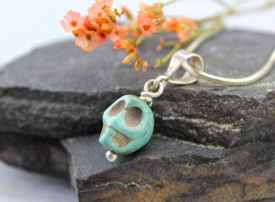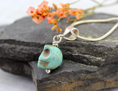 Colgante pequeño de calavera de resina turquesa. Hecho a mano en Nepal.
