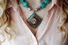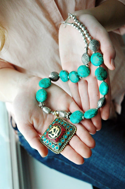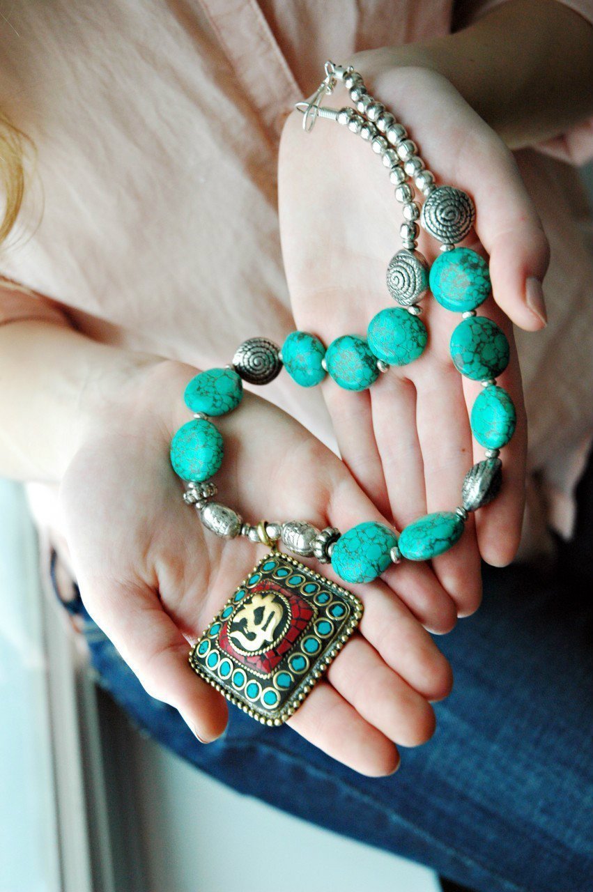 Collar de cuentas de trozos de turquesa con colgante. Hecho a mano en Katmandú Nepal.