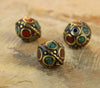 Abalorio tibetano tradicional con latón e incrustaciones de turquesa y coral. Sería una buena adición a cualquier mala, pulsera o collar.