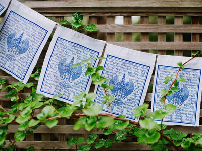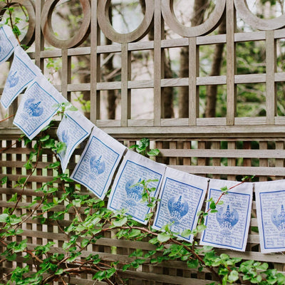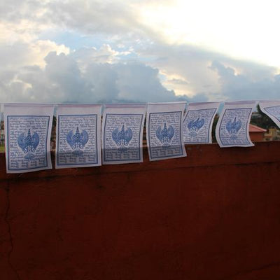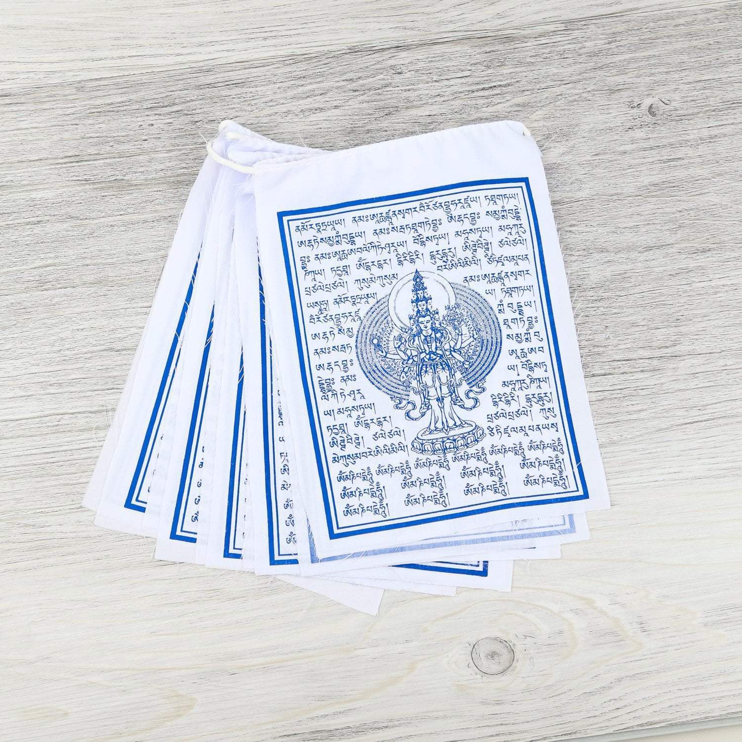 El juego incluye 10 banderas que miden aproximadamente 8 pulgadas de alto y 6 pulgadas de ancho. La hebra completa mide aproximadamente 6 pies de largo. Hecho a mano de 100% algodón en Nepal.