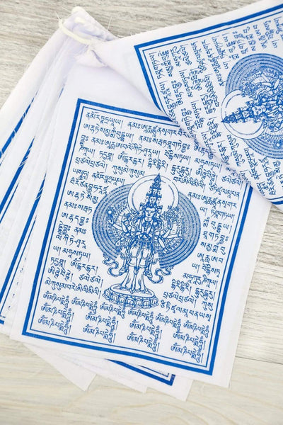 El Bodhisattva Avalokiteshvara, también conocido como Chenrezig de los Mil Brazos, es la encarnación de la gran compasión y juró liberar a todos los seres sintientes del sufrimiento. En el arte budista, Avalokiteshvara se muestra a menudo con múltiples cabezas y brazos que simbolizan su capacidad ilimitada para percibir el sufrimiento y ayudar a todos los seres.