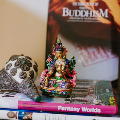 White Tara es la encarnación de la curación, la compasión y la sabiduría. Con sus siete ojos ella ve todo el sufrimiento y tiene la sabiduría y la guía que te ayudarán en tu práctica. A menudo se la conoce como la "Tara veloz" y es conocida por brindar un rápido alivio al sufrimiento.
