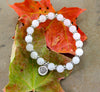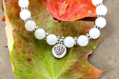 Inspirada en la deidad tibetana de la compasión, nuestra pulsera mala de Tara Blanca está hecha a mano con cuarzo nieve, espaciadores de plata y un dije de loto de plata esterlina. Tara Blanca se asienta sobre una flor de loto y representa la compasión y la curación.