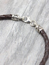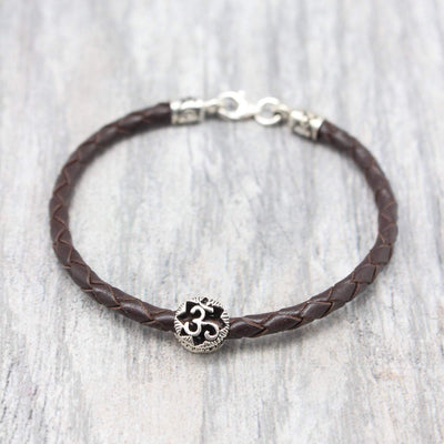 Nuestra nueva pulsera Om está hecha en Nepal con cuero marrón tejido a mano y cuenta con un dije Om de plata esterlina y un cierre de langosta. Queda genial solo o combinado con una pila de tus malas, pulseras o incluso un reloj favoritos.