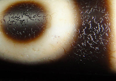 A large, rare, 12-eyed Dzi bead. It is not an ancient bead, but one of the exceptional beads made in the early 1990's with gorgeous cinnabar details and truly unique patterns. In the past 5 years, prices of Dzi beads have gone sky high and many original ancient beads are selling for $100,000 to $2,000,000. True agate modern beads made in the past 25 years are still affordable, and we continue to search for and collect these stunning beads.