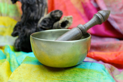The original collector of this set of bowls marked the chakras on the bottom of the bowls in Sanskrit. However, the writing can easily be removed with a wet cloth.