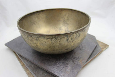 This is a 9 x 4 inch bowl in the tone of G4 390hz, aligning it with the Throat Chakra. It has a weight of 2lbs 4oz and features a thin lip.