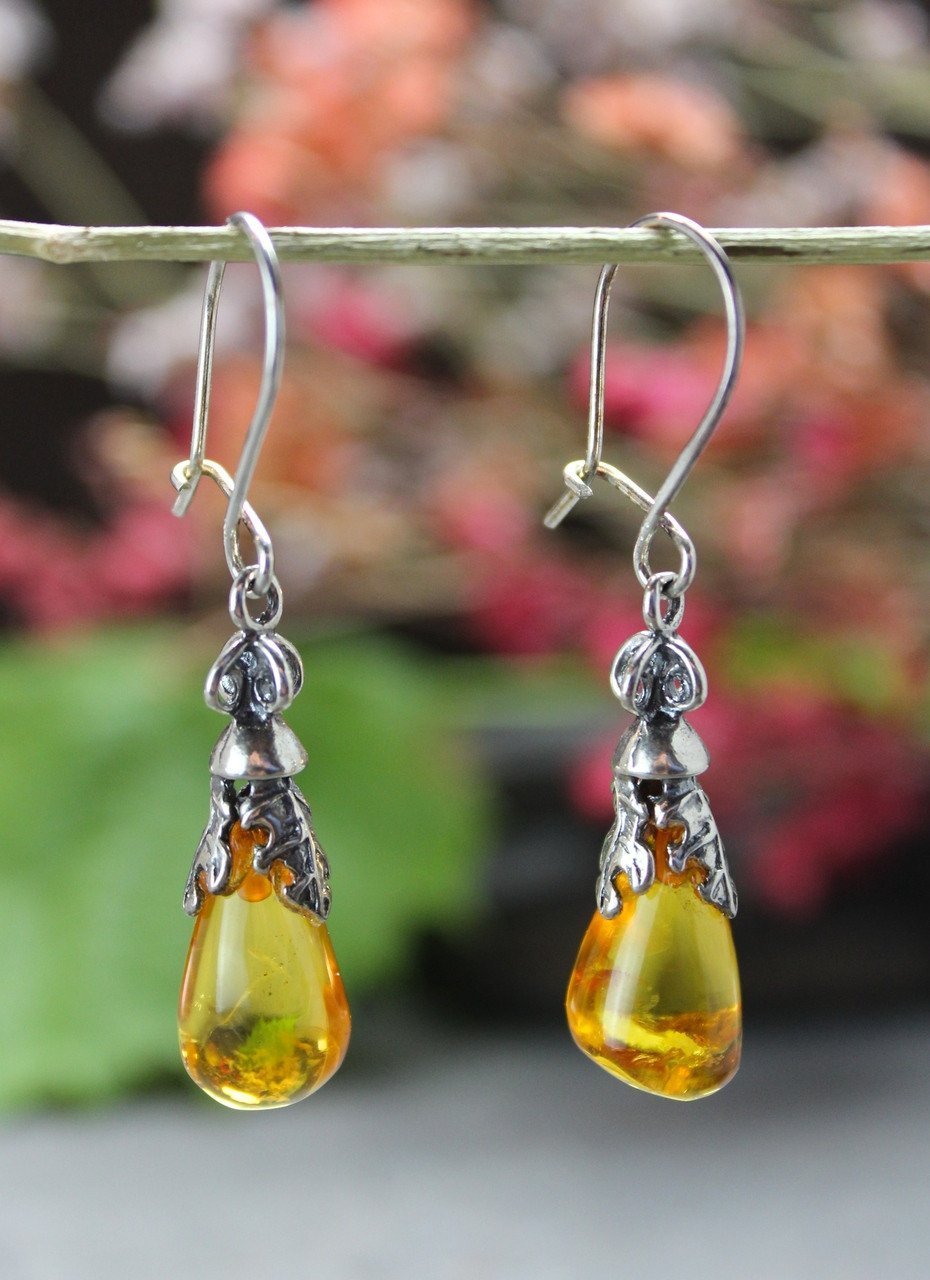 Amber and Sterling Silver Teardrop Earrings