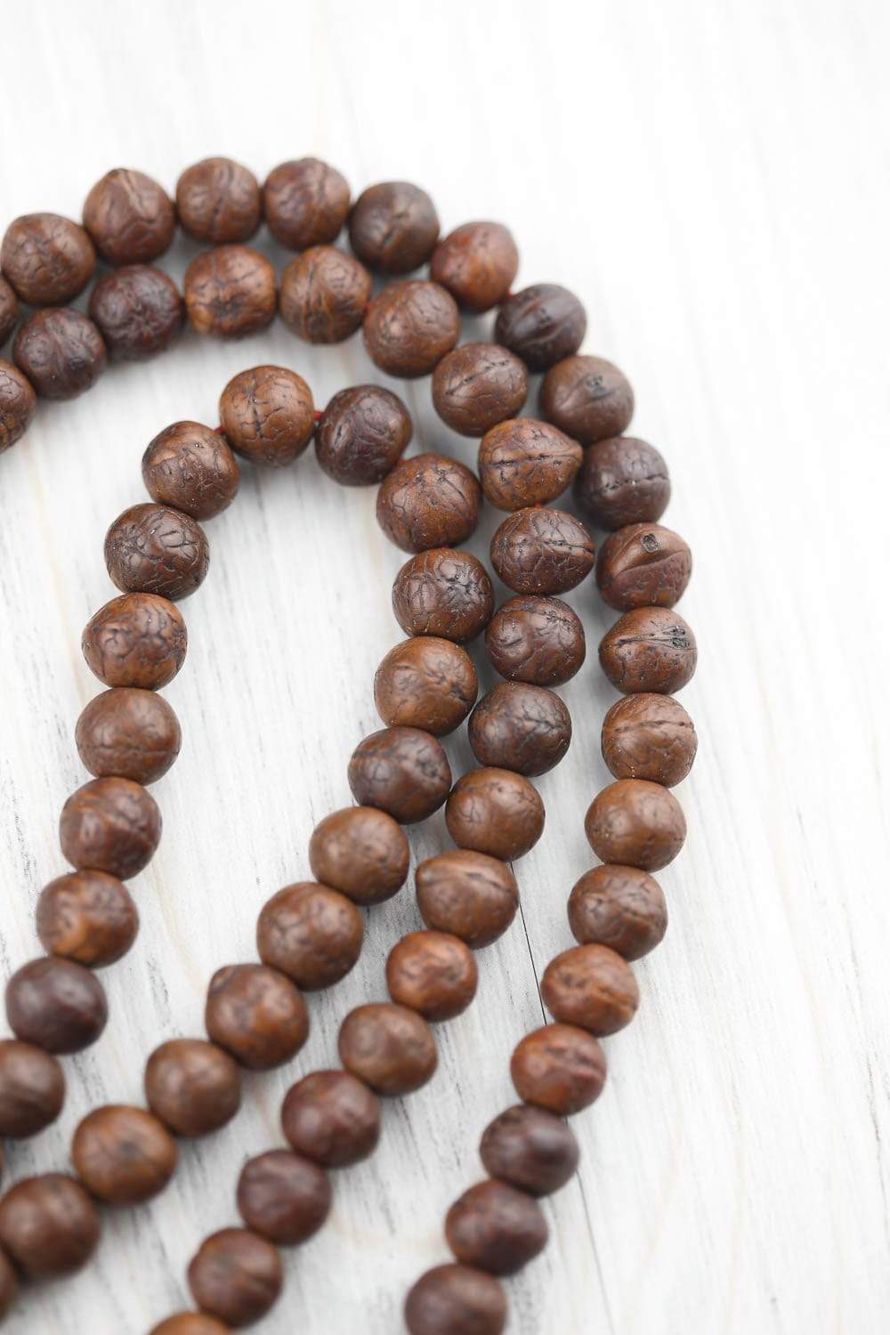 • These dark-speckled seed beads have special meaning for all seekers of divine wisdom.  "Bodhi" in Sanskrit means enlightenment; as an "enlightened" seed, many practitioners use these malas for their essence and inherent teachings within each seed.