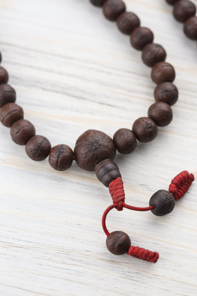 • These dark-speckled seed beads have special meaning for all seekers of divine wisdom.  "Bodhi" in Sanskrit means enlightenment; as an "enlightened" seed, many practitioners use these malas for their essence and inherent teachings within each seed.