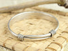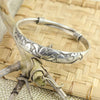 Bracelet is made from 60% white copper and 40% zinc, providing the look and feel of sterling silver with a high shine at a fraction of the cost. Measures approximately 8 inches around and is about 1/2 inch thick. Made in India.