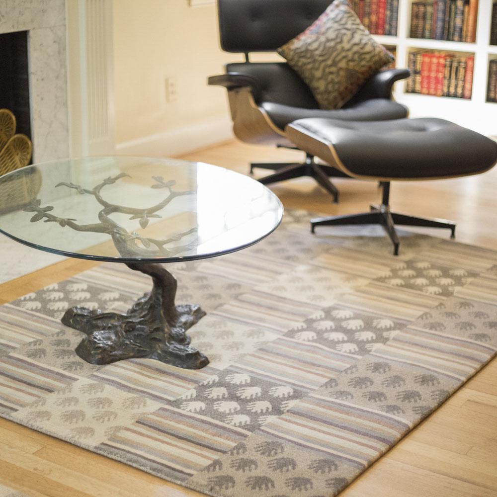 Made in the traditional manner, each design is woven by hand on looms and includes 100 knots per square inch.  All of the wool is imported from New Zealand and hand woven by well paid artists in a large open air complex in Kathmandu.  Tibetan carpets are truly beautiful pieces of art known for their quality and longevity.