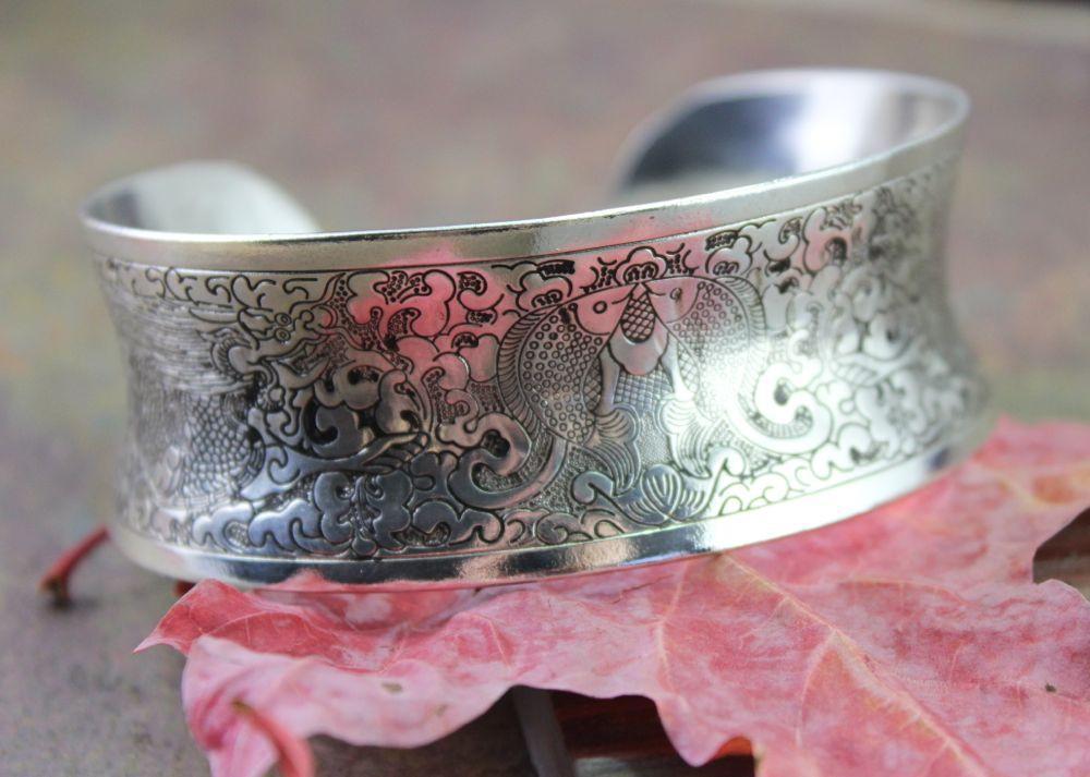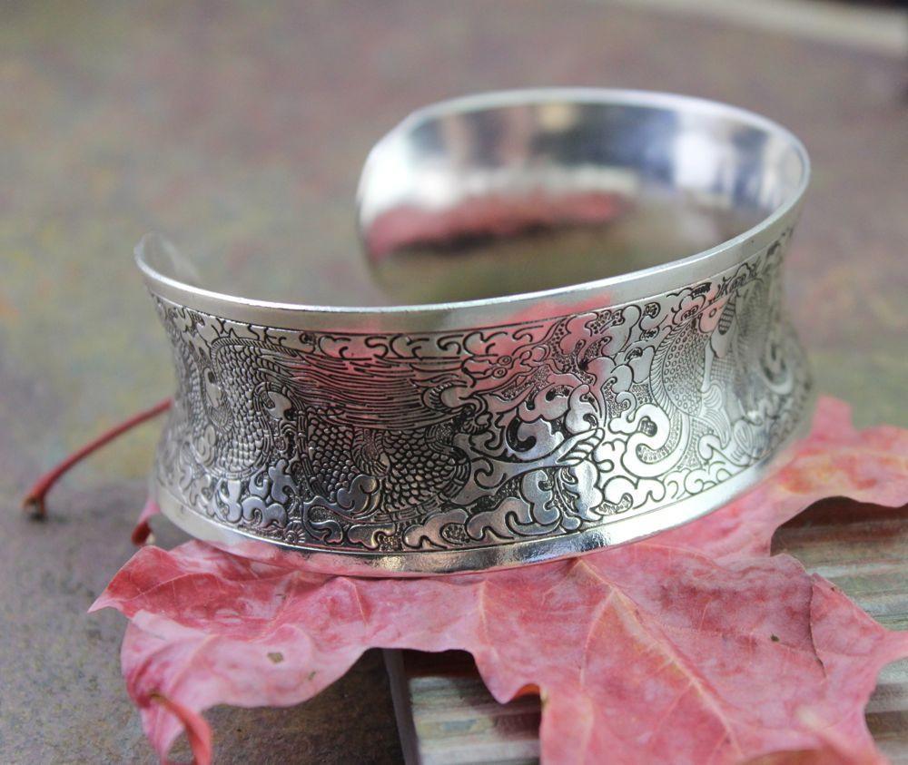 Handmade in Thailand,with two fish design and dragons hand carved into this stunning bracelet.
