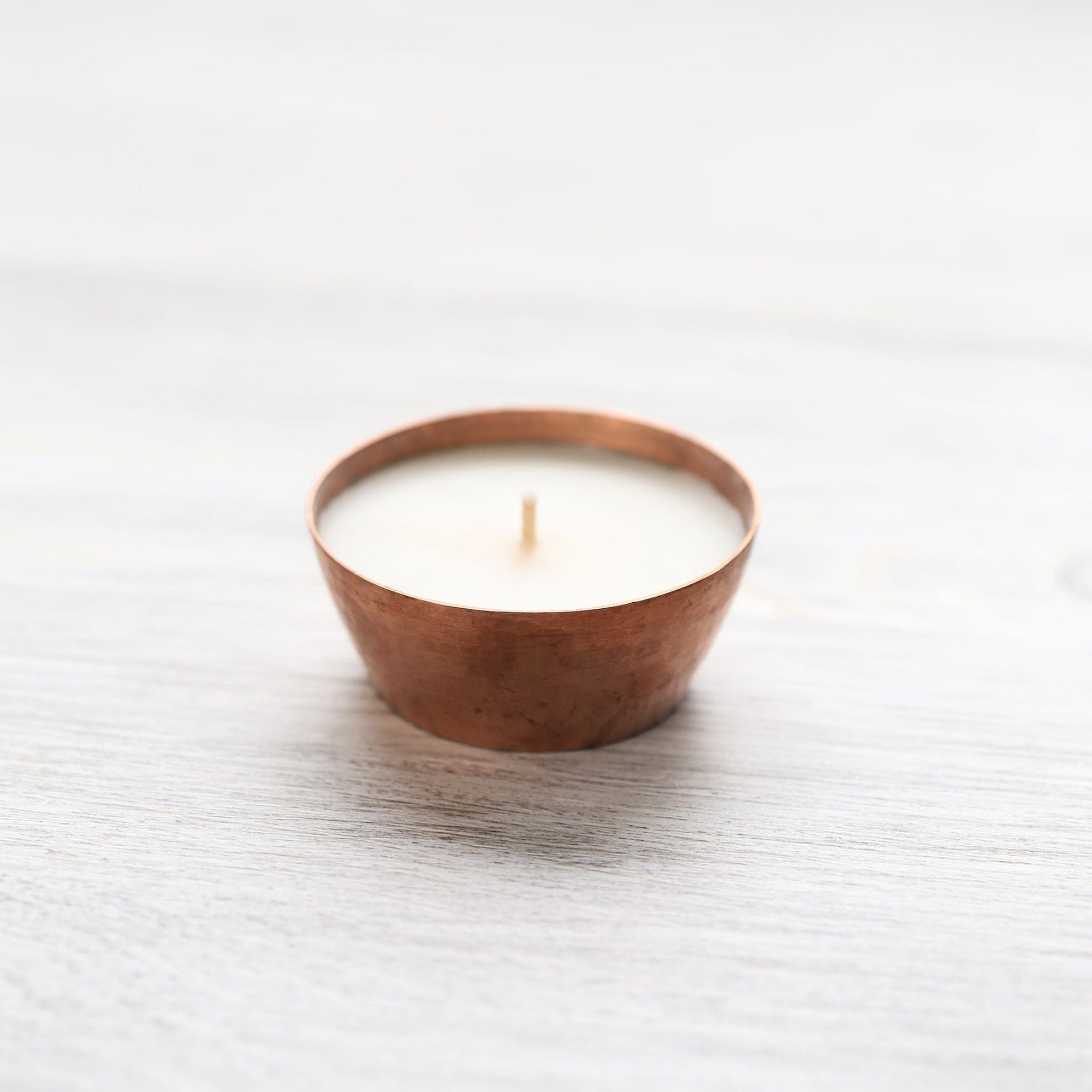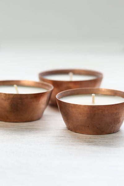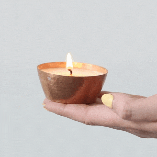 The Ayurvedic Copper Candle features a Sandalwood scent with notes of Amber. Sandalwood's calming effect is a useful aid in meditation. It soothes nervous tension and anxiety, and helps to bring peace and acceptance. The relaxing fragrance of Amber increases positivity and alleviates negative thoughts or feelings.
