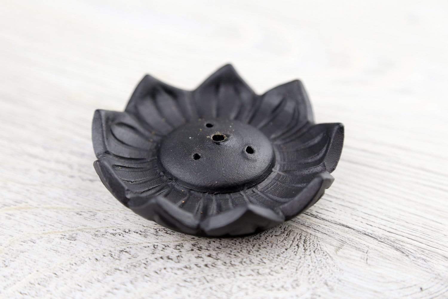 As it grows out of and sits on top of muddy waters, the lotus flower symbolizes wisdom, compassion, and healing. Burner includes one larger hole for Tibetan incense and three smaller holes for Japanese incense.