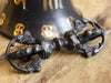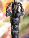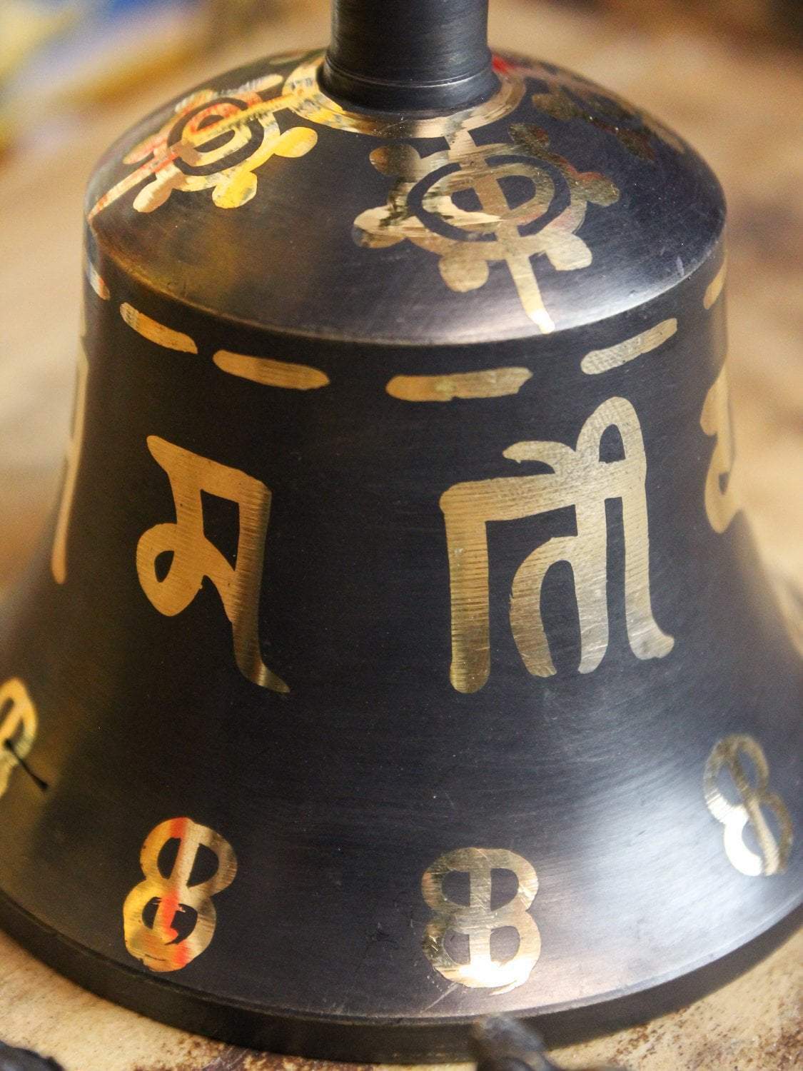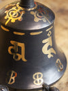 This black bell and dorje set is entirely handmade in Nepal using traditional methods. It is the perfect set for your altar space! Bell features a gold double dorje design and the mantra of compassion, Om Mani Padme Hum, along the outside.