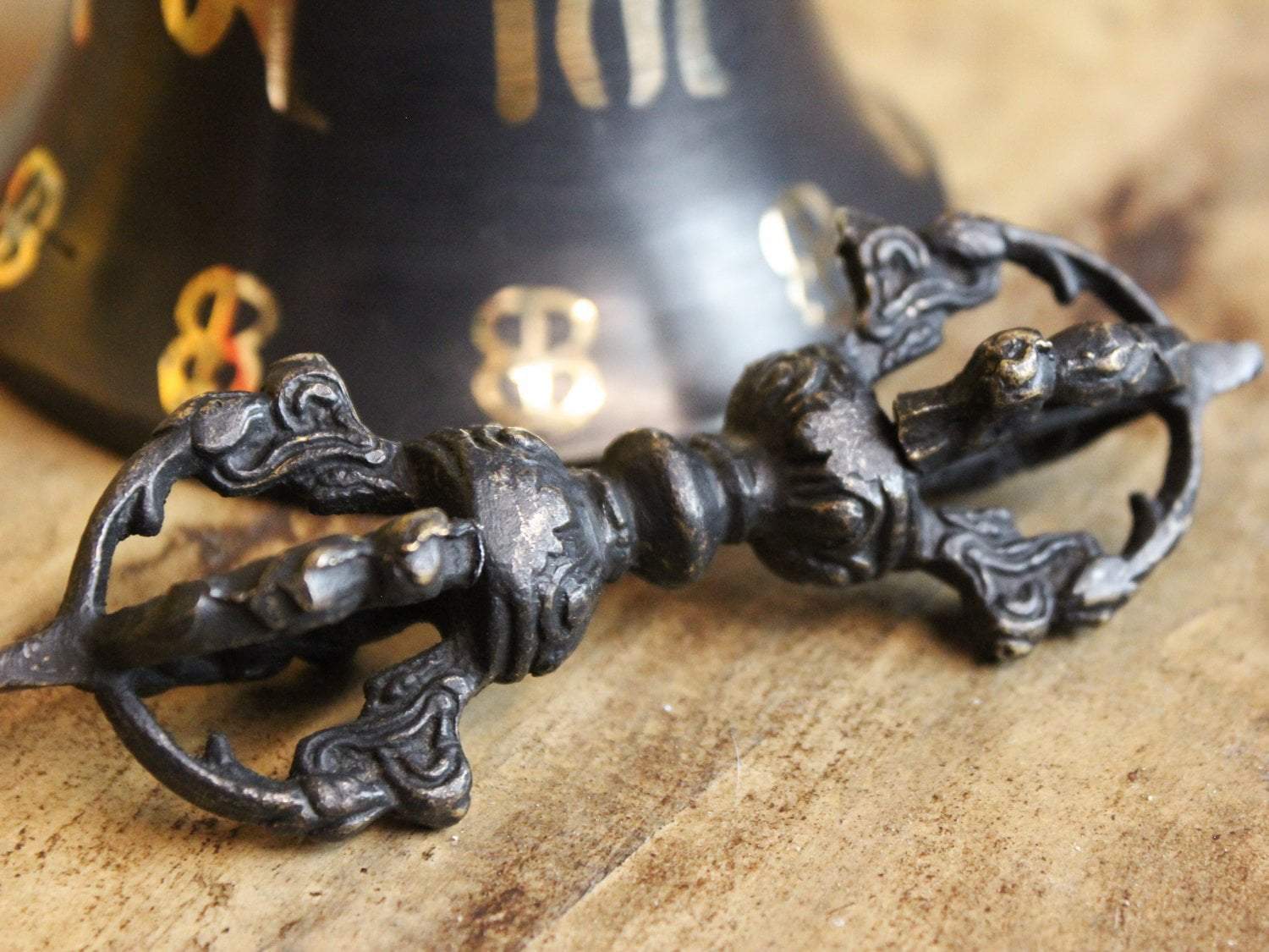 The hollow of the bell symbolizes the wisdom cognizing emptiness. The clapper represents the sound of emptiness. Paired with the dorje, the bell represents wisdom. As wisdom and method are an undivided unity, so the dorje and bell are never parted or employed separately.