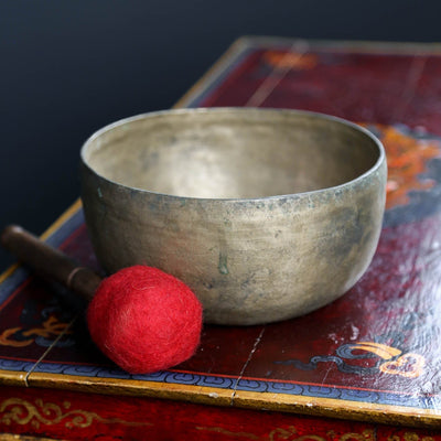 • The bowl was hand selected by the DharmaShop team in Nepal from a stunning and superior collection of antique bowls for their amazing quality of sound.
