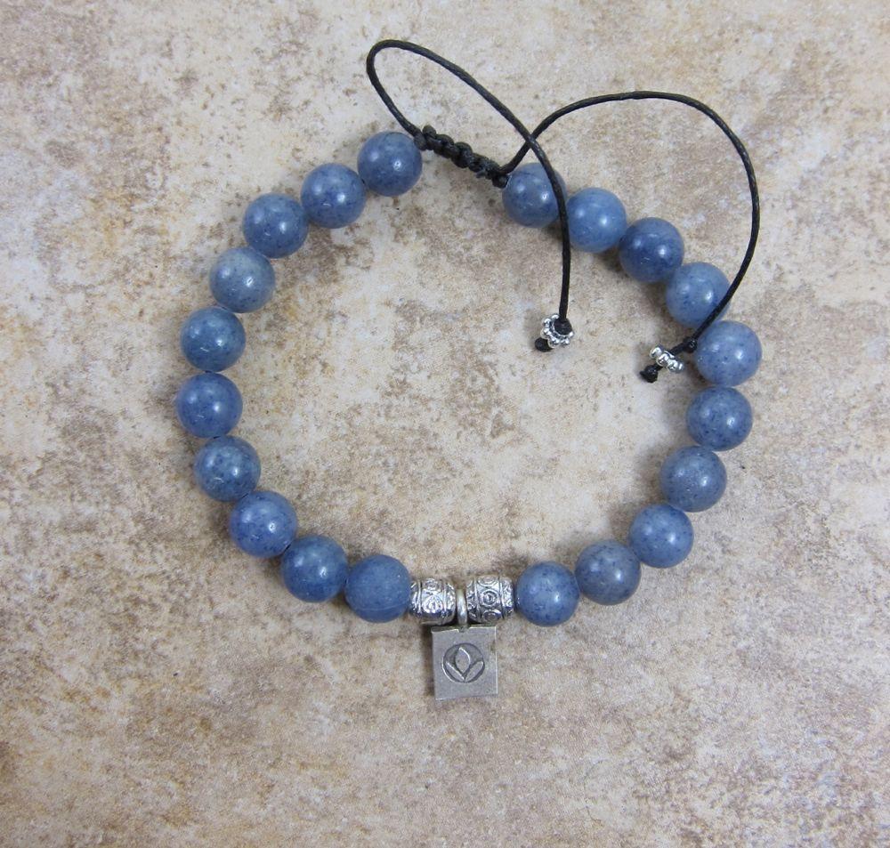 One of my favorites. Blue aventurine is a cloudy sky blue bead which looks amazing mixed with silver beads. 22 beads plus a sterling silver lotus charm