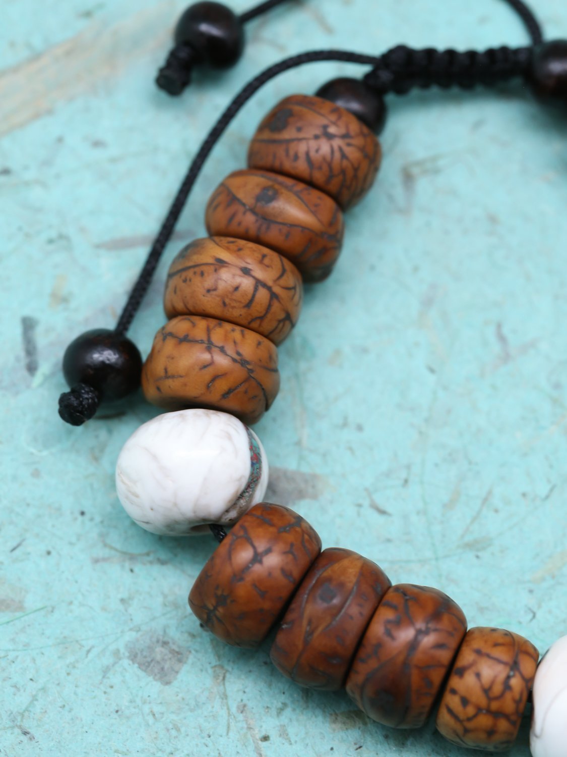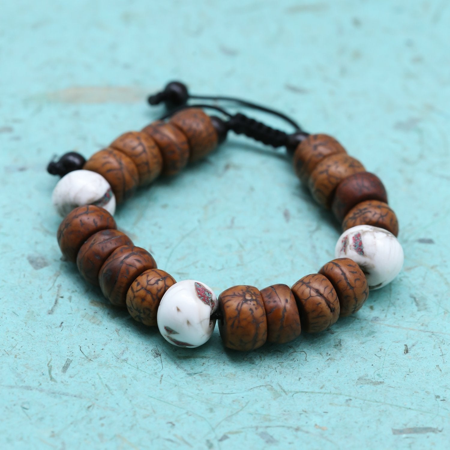 Bracelet measures approximately 7 inches around when fully tightened and opens to about 10 inches. Bodhi beads are 12-15mm, naga shell beads are 13-15mm.