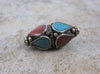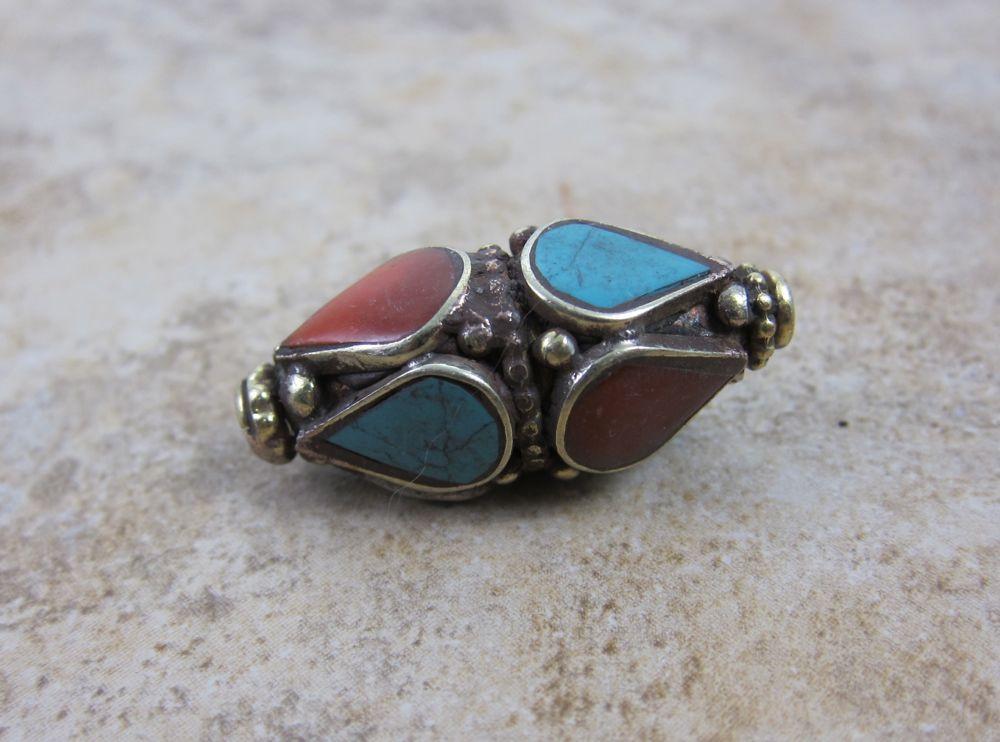 A Large handmade bead from nepal. inlaid with 4 turwuoise and 4 coral beads