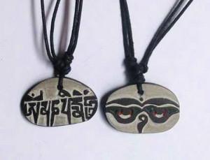 This 2 sided stone necklace is hand carved with the Tibetan prayer for compassion 'om mani padme hung' on one side and the Buddha eyes on the other side. Om mani stones are found all over Tibet and Nepal as an offering to enhance compassion in the world. Adjustable.
