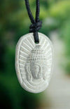 This finely detailed pendant is made in Kathmandu Nepal. On a fully adjustable cord.Size:1 inch high