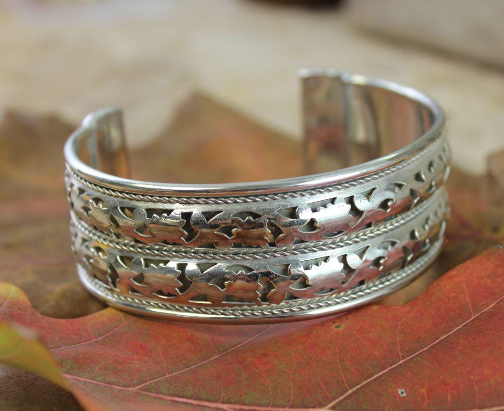 Detailed, dimensional leaf pattern makes this white metal cuff eye catching. Fair Trade and made in India.