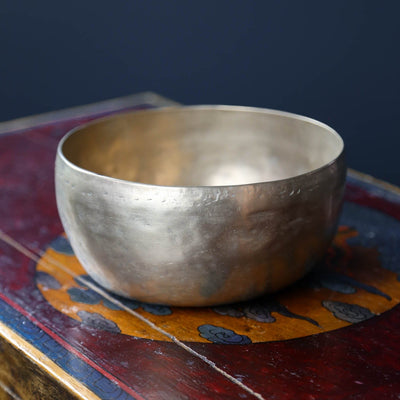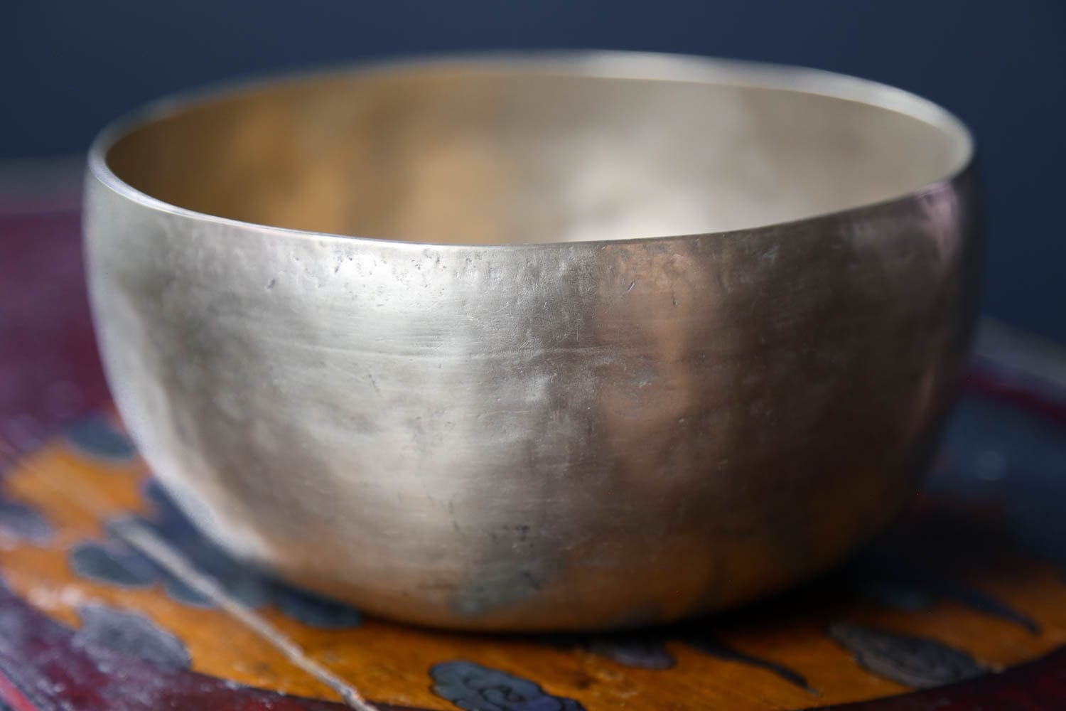Each time we're able to get a small collection of these bowls is exciting as they are exceptional. Antique Tibetan singing bowls like this one are highly sought after for their remarkable quality sound, rich tones, and unique physical characteristics. Every handmade mark tells a story of the bowls history!