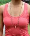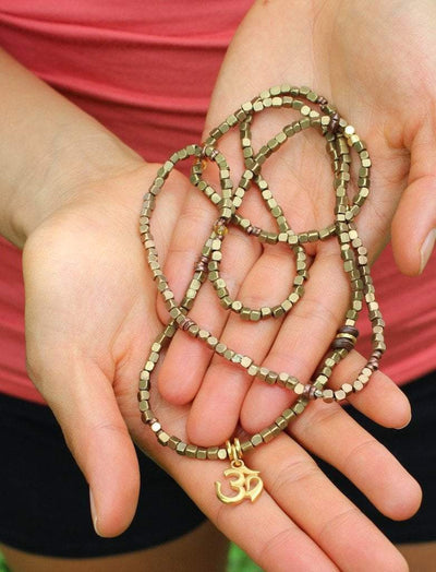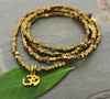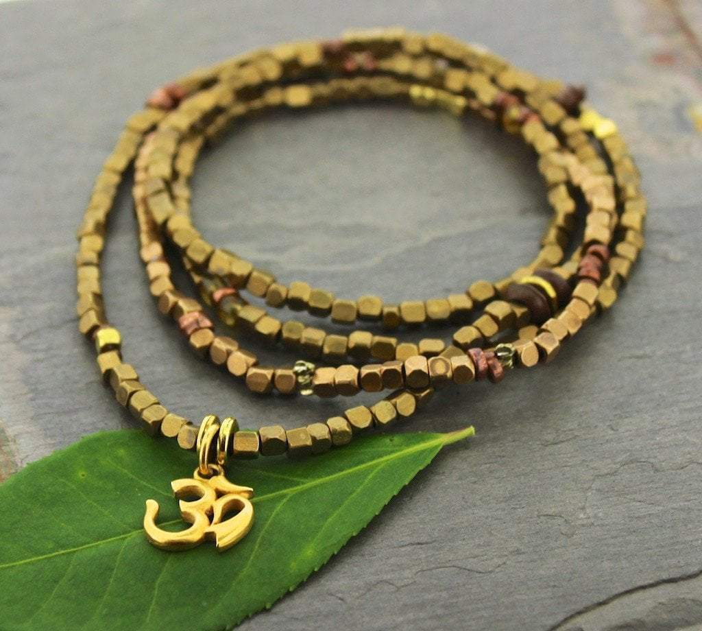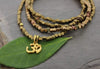 Christy has added to her line of exceptional Tibetan jewelry with this gold OM pendant on a string of gemstone, gold plated, copper and brass beads. All beads sourced in Nepal and Thailand.