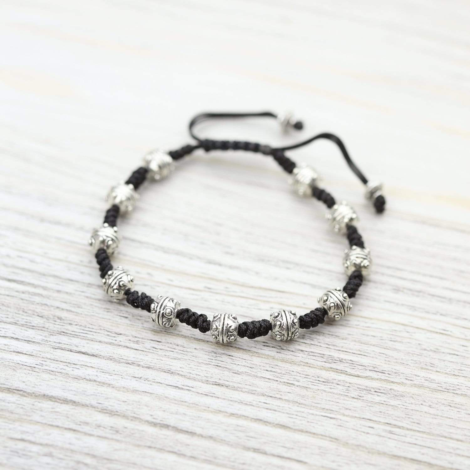 Adjustable bracelet measures approximately 10 inches around when fully opened and tightens to fit about 6.5 inches. Handmade in Nepal.
