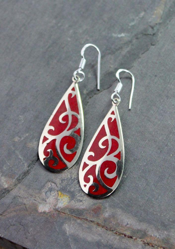 Lightweight silver plated earrings with sterling french hooks and a delicate coral inlay design
