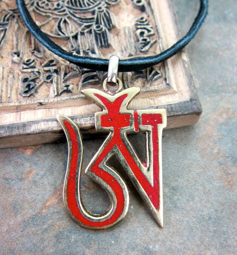 This large heavy pendant is great for men or women. almost 2 inches tall. Handmade brass pendant with coral details made in Nepal.