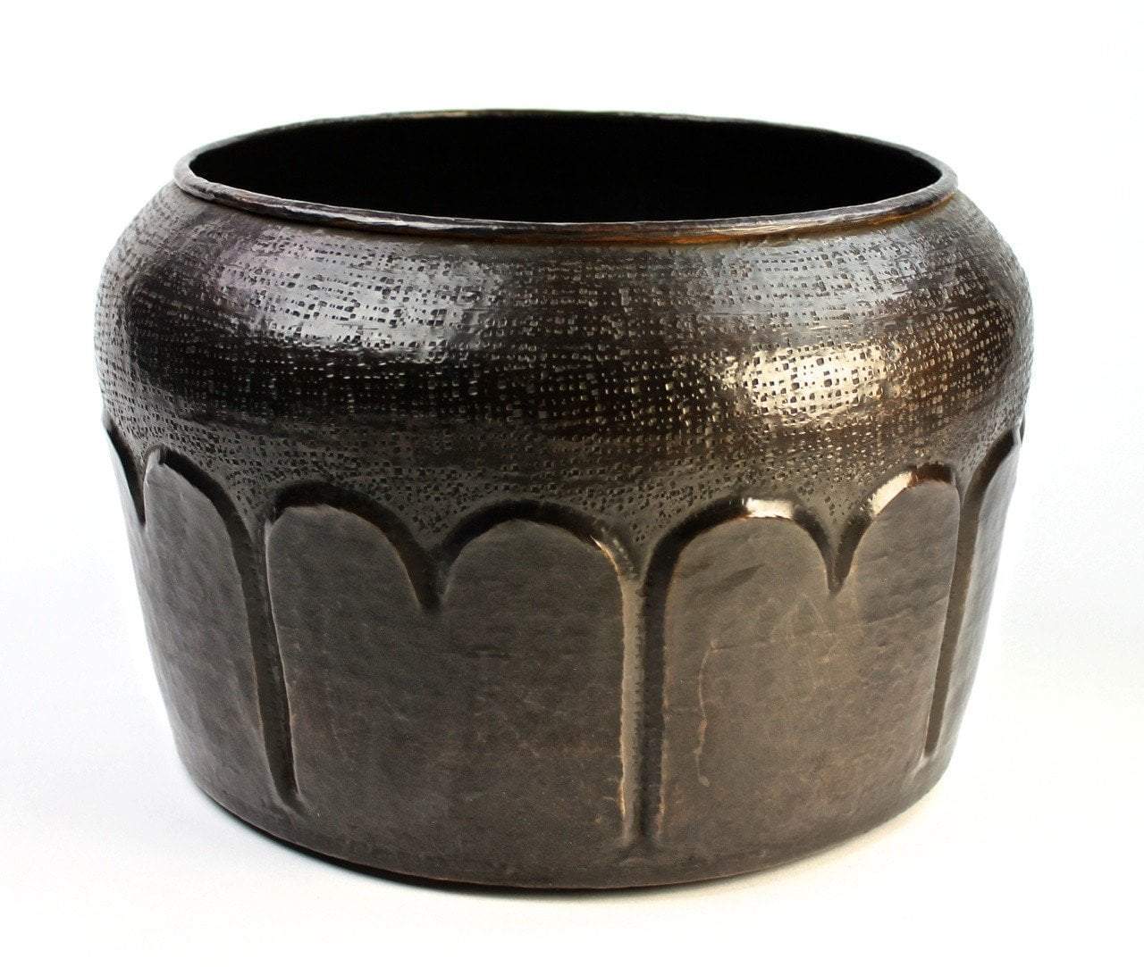These impressive, hand hammered copper pots are perfect for storing fire wood, plants or beautiful water gardens.