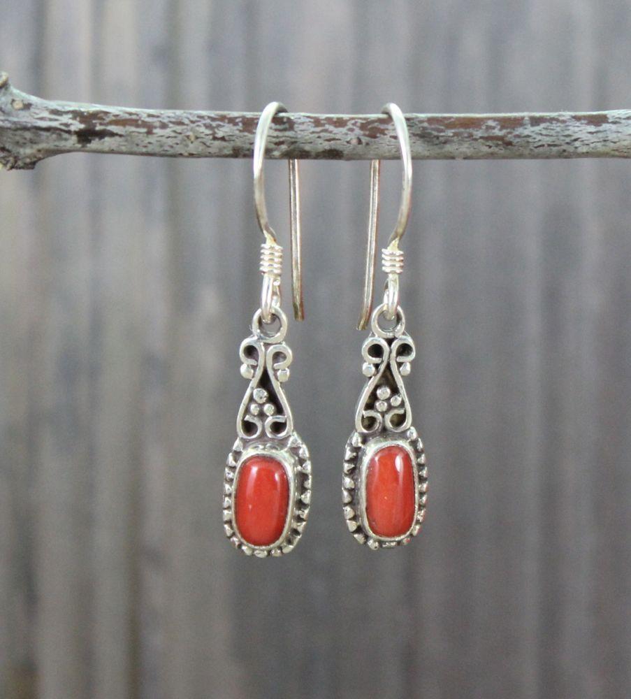 Tibetan traditional earrings are not always huge.... these earrings are sterling silver with beautiful old coral stones