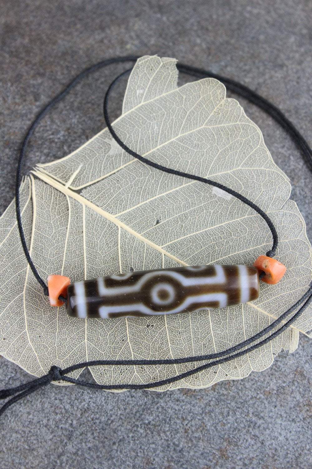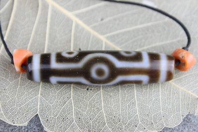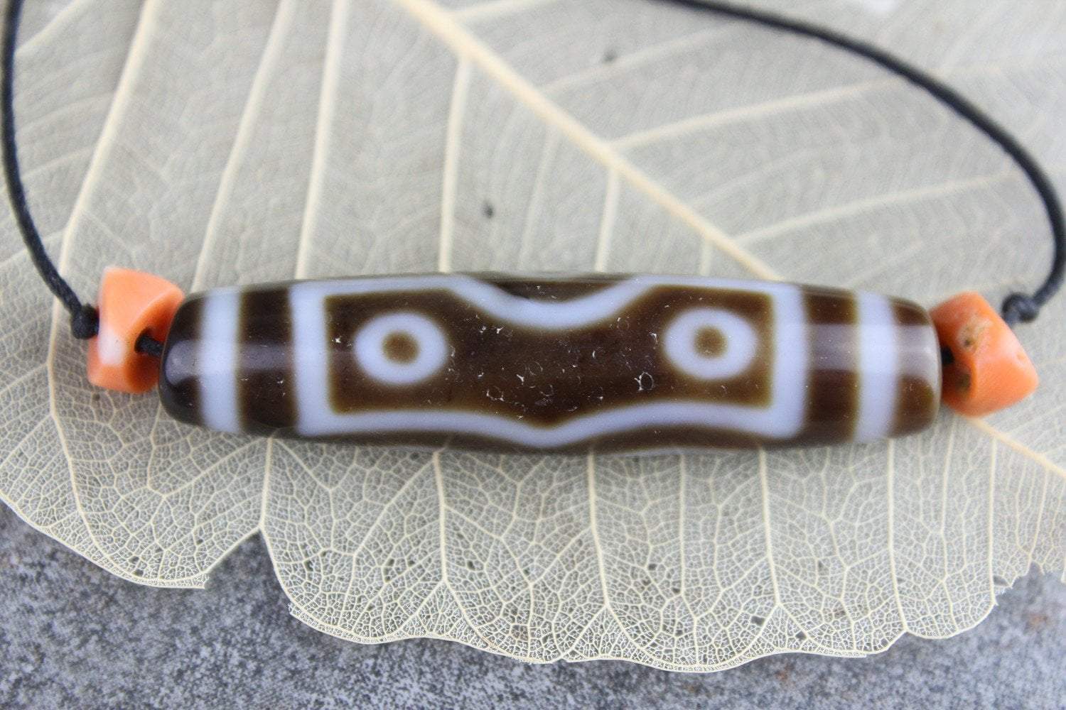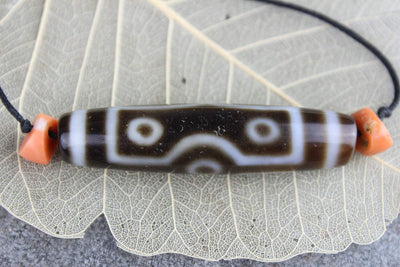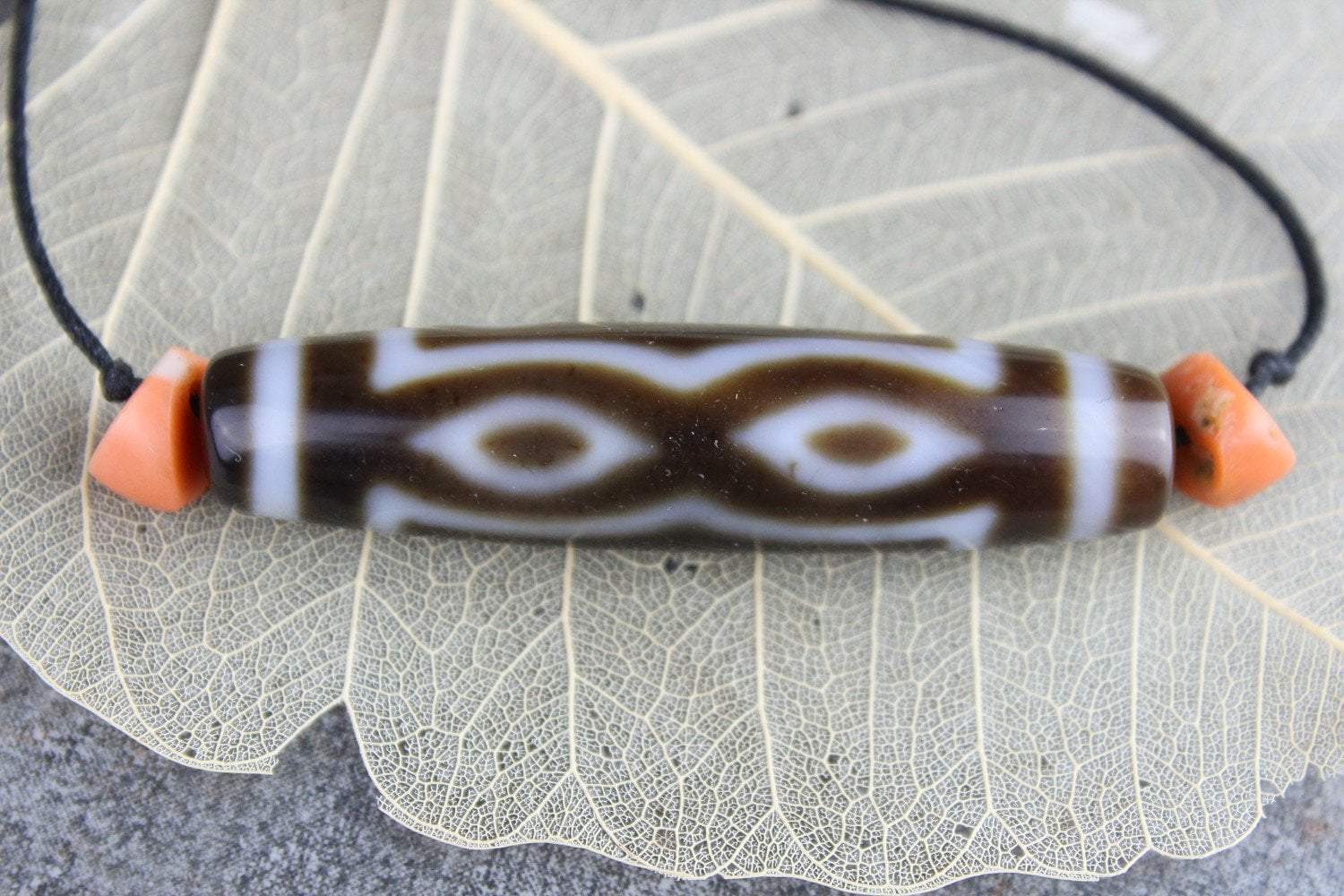 Divine Buddha Eyes Dzi Necklace with Antique Coral