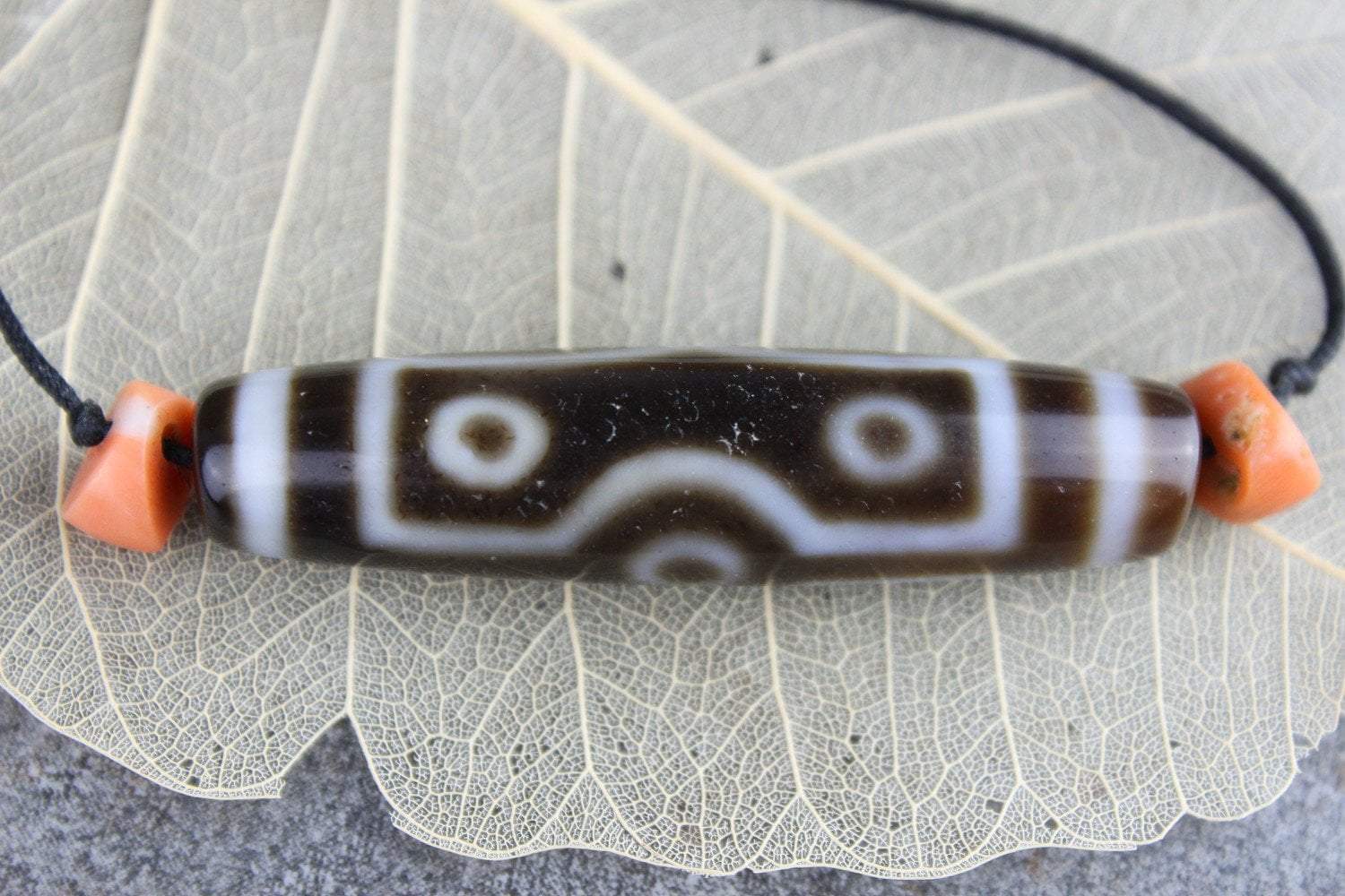 The 5 eyed dzi is considered a magical item and is highly sought after.  It assists one in obtaining whatever one desires, therefore it is a very desired bead.  Also, it brings about endless happiness.  The Buddha eyed dzi is a beacon of light and hope.  It is believed that the stone gives the wearer special power in realizing their dreams and also brings about endless happiness.  Coral symbolizes life and blood force energy; it is the stone of transformation and peace.